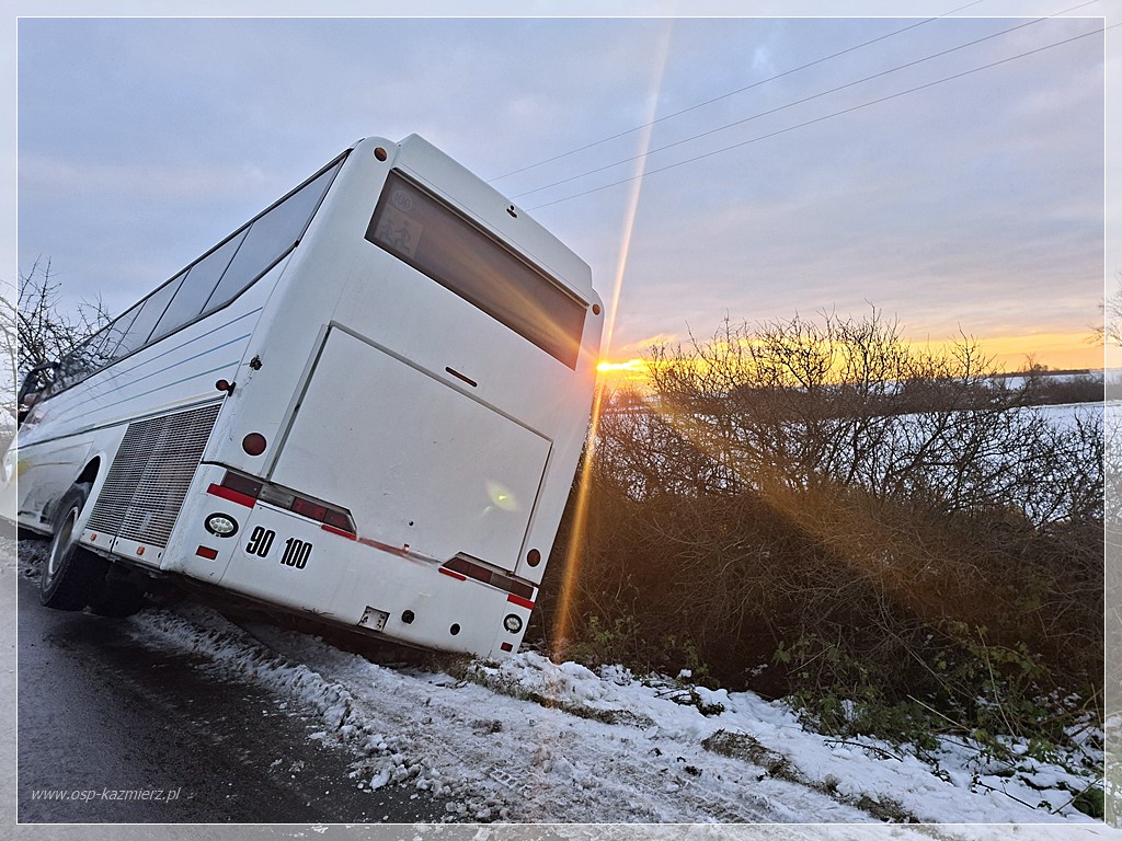 W poniedziałek 26 stycznia we wczesnych godzinach porannych doszło do kolizji samochodu ciężarowego z busem dostawczym. W chwili zdarzenia panowały trudne warunki drogowe, spowodowane marznącym deszczem. Kierowcy obu pojazdów zostali przebadani przez Zespół Ratownictwa Medycznego i pozostali na miejscu zdarzenia. W działaniach ratowniczych uczestniczyły zastępy z Jednostki Ratowniczo-Gaśniczej z Szamotuł oraz jednostki Ochotniczych Straży Pożarnych z Bytynia, Kaźmierza i Podrzewia, a także policja oraz ZRM.