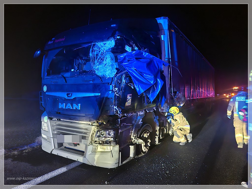 We wtorek 20 stycznia 2026 r. późnym wieczorem na drodze krajowej nr 92 w miejscowości Bytyń doszło do groźnego wypadku z udziałem samochodu ciężarowego i busa. Droga przez pewien czas była zablokowana. Około godziny 22:37 służby ratunkowe otrzymały zgłoszenie o zderzeniu dwóch pojazdów na odcinku trasy biegnącym przez Bytyń (powiat szamotulski). Siła uderzenia była na tyle duża, że oba auta zostały poważnie uszkodzone, a jezdnia na znacznym odcinku została zanieczyszczona częściami rozbitych karoserii. Na miejsce natychmiast zadysponowano liczne siły ratownicze. Strażacy zabezpieczyli teren działań i przystąpili do neutralizacji wycieków płynów eksploatacyjnych oraz uprzątnięcia pozostałości powypadkowych. W akcji brały udział: JRG Szamotuły, OSP Bytyń, OSP Kaźmierz, Zespół Ratownictwa Medycznego (ZRM) i Policja. Kierujący pojazdami zostali poddani badaniom przez przybyłych na miejsce ratowników medycznych. Podjęto decyzję, że jeden z kierowców wymaga dalszej hospitalizacji i został on przetransportowany do szpitala. Policja prowadzi czynności mające na celu ustalenie dokładnych przyczyn i okoliczności tego zdarzenia.