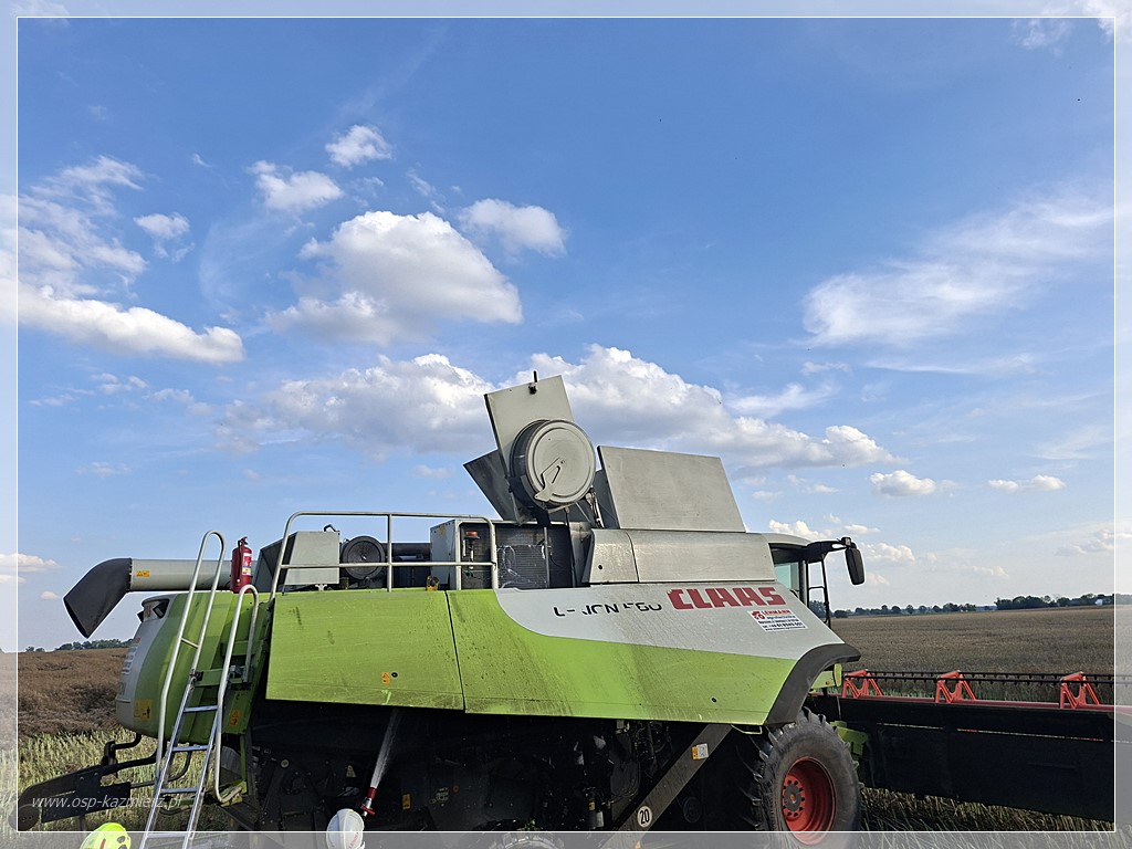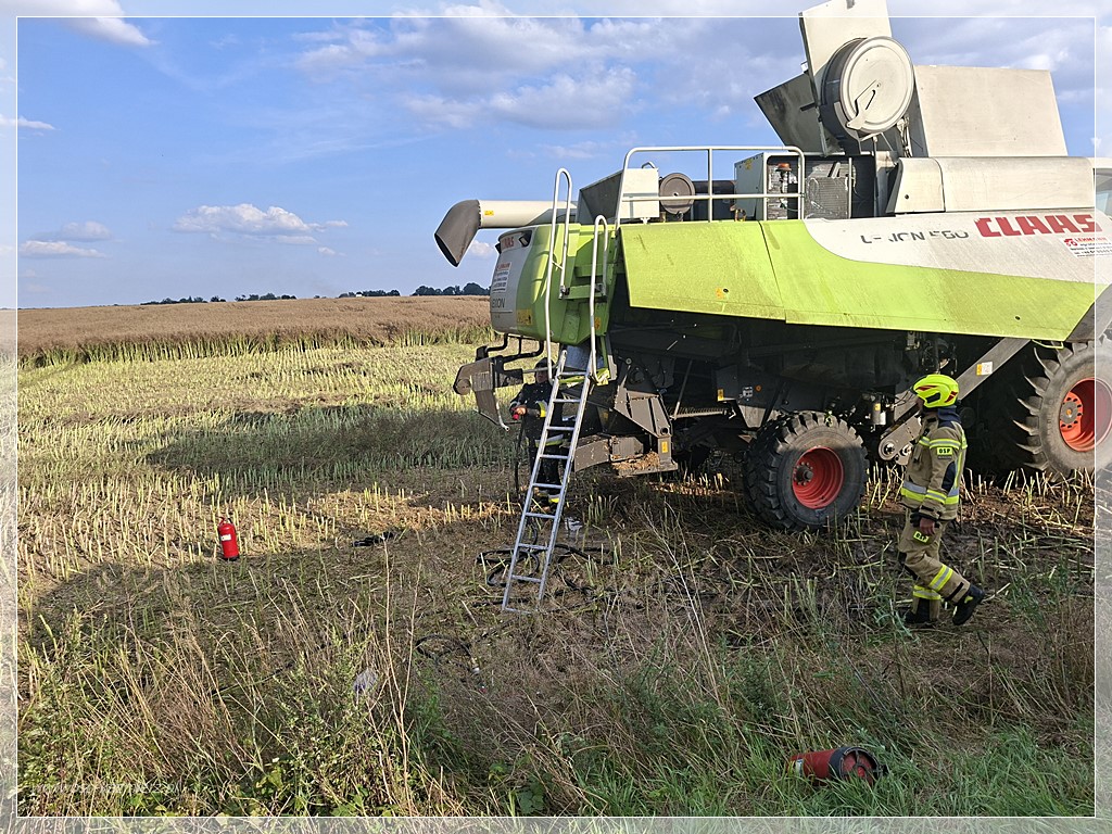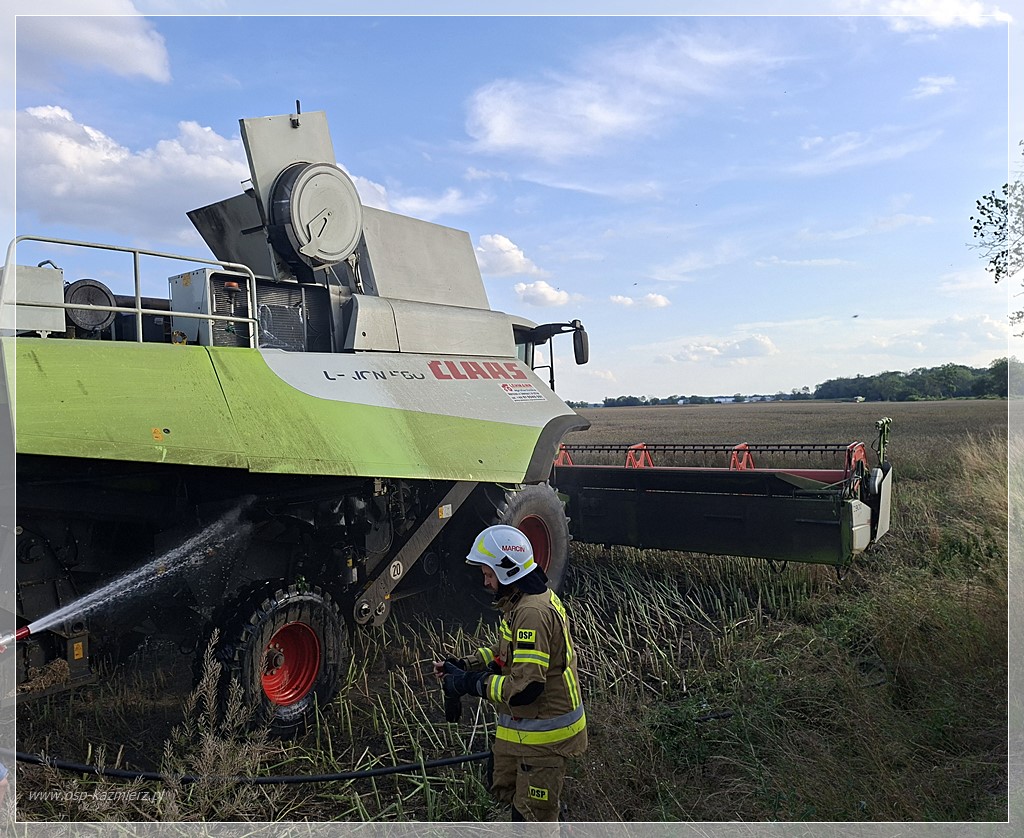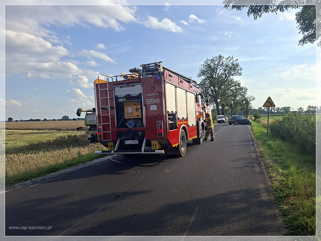 Po południu, w niedzielę 20 lipca 2025 r. doszło do pożaru kombajnu zbożowego pracującego na polu między Kaźmierzem i Młodaskiem podczas koszenia rzepaku. Dzięki szybkiej reakcji świadków-pracowników i sprawnemu działaniu straży pożarnej ogień udało się opanować, minimalizując straty. Na miejsce natychmiast zadysponowano Jednostkę Ratowniczo-Gaśniczą z Szamotuł oraz zastępy Ochotniczych Straży Pożarnych z Bytynia, Chlewisk i Kaźmierza. Działania polegały na ugaszeniu maszyny oraz zabezpieczeniu pola przed rozprzestrzenieniem się pożaru na okoliczne uprawy.