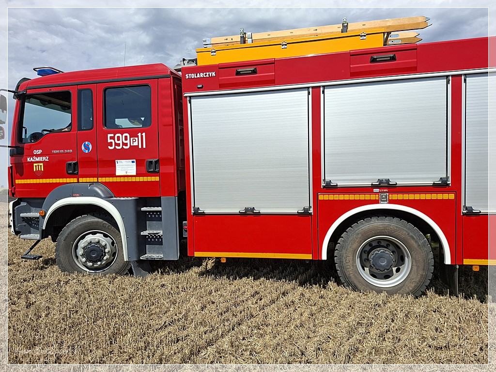 13 sierpnia 2025 r., doszło do pożaru ścierniska w miejscowości Sokolniki Małe. Akcja gaśnicza była utrudniona ze względu na sprzyjający rozprzestrzenianiu się ognia wiatr oraz wysuszone ściernisko. W kluczowym momencie jeden z mieszkańców widząc zagrożenie dla sąsiedniego pola ze zbożem ruszył na pomoc. Wykorzystując maszynę rolniczą, wykonał on pas ochronny, odcinając miejsce pożaru. Ogień  ugaszono, a następnie przelano pogorzelisko. Na miejscu działały: JRG Szamotuły, OSP Brodziszewo, OSP Kaźmierz, OSP Sokolniki Małe. W tym samym dniu około godziny 14:53 nasza jednostka została zadysponowana w celu zabezpieczenia rejonu działania Państwowej Straży Pożarnej w Szamotułach, która  wraz z innymi jednostkami prowadziła działania gaśnicze przy pożarze lasu.