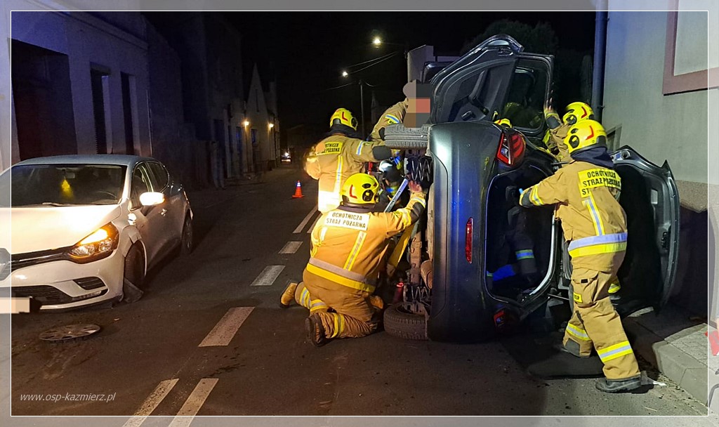 W piątek 19 września 2025 r., około godziny 21:20 służby zostały zaalarmowane do zdarzenia z udziałem dwóch aut osobowych na ulicy Szkolnej w Kaźmierzu, w wyniku którego jeden z pojazdów przewrócił się na bok. Na miejscu pojawiły się służby ratunkowe: dwa zastępy Jednostki Ratowniczo-Gaśnicze z Szamotuł,  dwa zastępy jednostki Ochotniczej Straży Pożarnej z Kaźmierza, dwa  Zespoły Ratownictwa Medycznego oraz  dwa patrole Policji. Jedna z osób biorących udział w zdarzeniu po wstępnym przebadaniu przez ratowników medycznych  została przetransportowana do szpitala.