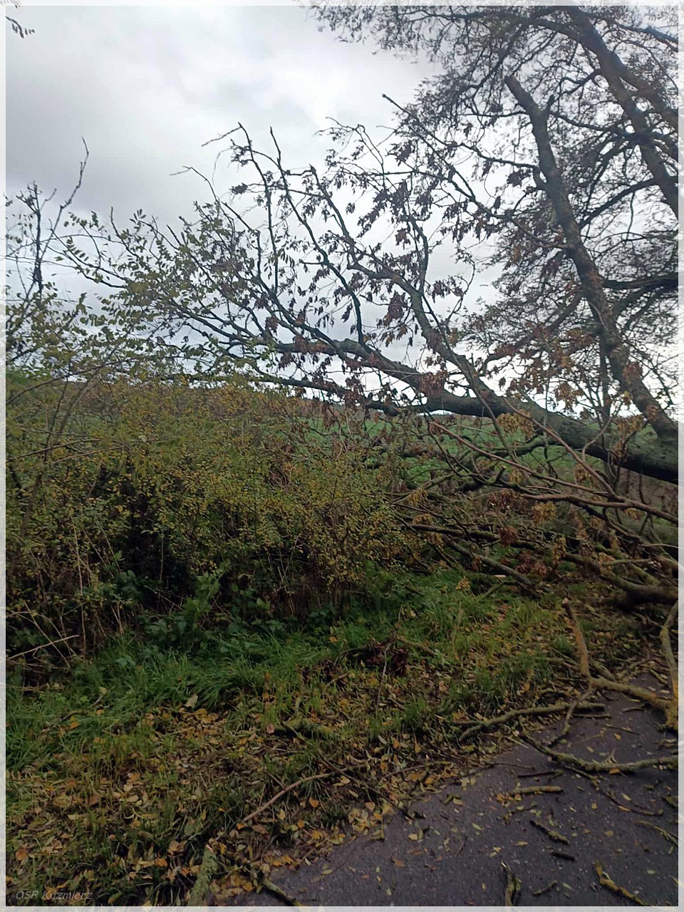 W czwartek 30 października 2025 r., strażacy z Ochotniczej Straży Pożarnej w Kaźmierzu mieli pracowity dzień. Po przejściu silnych opadów deszczu i porywistych podmuchów wiatru, druhny i druhowie zostali wielokrotnie zadysponowani do interwencji związanych ze szkodami pogodowymi. Głównym zadaniem było usuwanie powalonych drzew i połamanych konarów, które tarasowały drogi na terenie gminy, uniemożliwiając bezpieczny przejazd. Strażacy apelują o zachowanie szczególnej ostrożności podczas niekorzystnych warunków atmosferycznych.