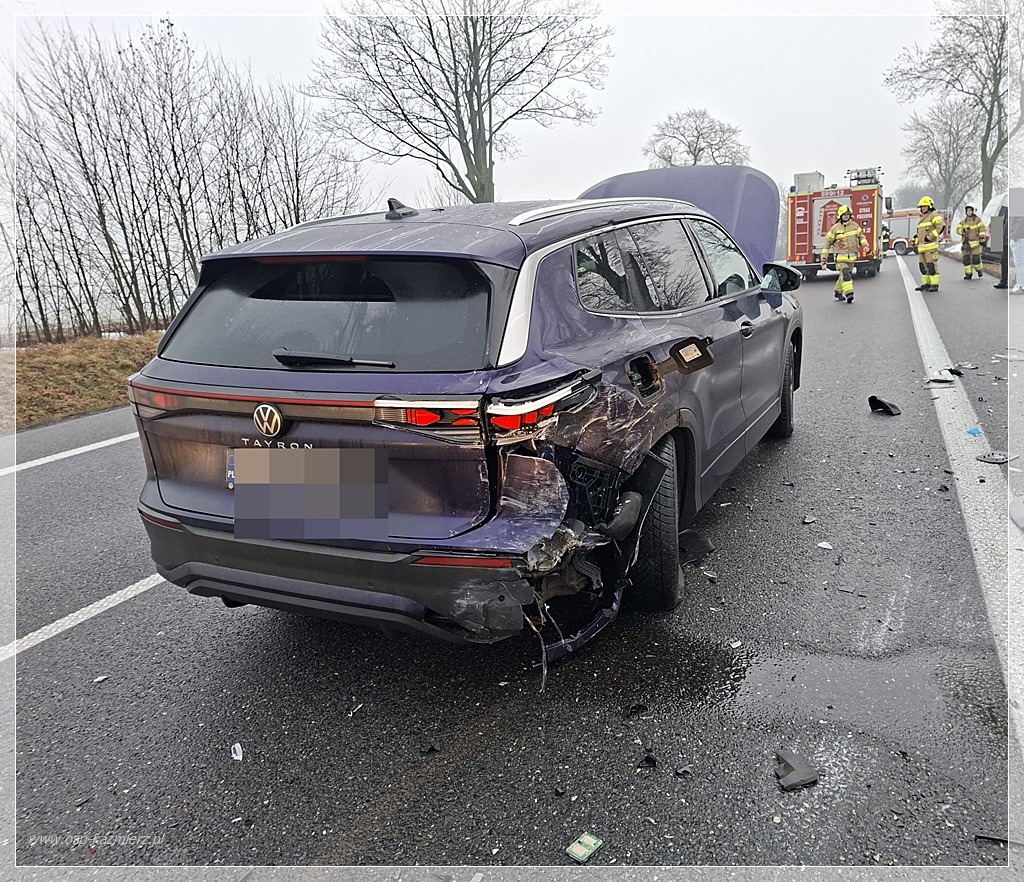 W piątkowy poranek, 16 stycznia 2026 roku, na drodze krajowej nr 92 doszło do groźnie wyglądającego zdarzenia drogowego. W miejscowości Gaj Wielki zderzyły się trzy samochody osobowe. Służby ratunkowe otrzymały zgłoszenie o godzinie 8.25. Na miejsce natychmiast zadysponowano zastępy straży pożarnej z OSP Bytyń, OSP Gaj Wielki oraz OSP Kaźmierz. Po przyjeździe pierwszych jednostek i rozpoznaniu terenu okazało się, że w zdarzeniu brały udział trzy pojazdy osobowe. Mimo znacznych uszkodzeń karoserii, sytuacja na szczęście nie okazała się tragiczna w skutkach. W wyniku kolizji nikt nie został poszkodowany. Działania strażaków polegały na zabezpieczeniu miejsca zdarzenia, odłączeniu akumulatorów w rozbitych pojazdach oraz uprzątnięciu jezdni z pozostałości  po zdarzeniu. Na miejscu obecni byli również funkcjonariusze policji, którzy ustalali dokładne przyczyny i okoliczności porannego zdarzenia. Przez pewien czas ruch na trasie Poznań – Pniewy w miejscowości Gaj Wielki był utrudniony.
