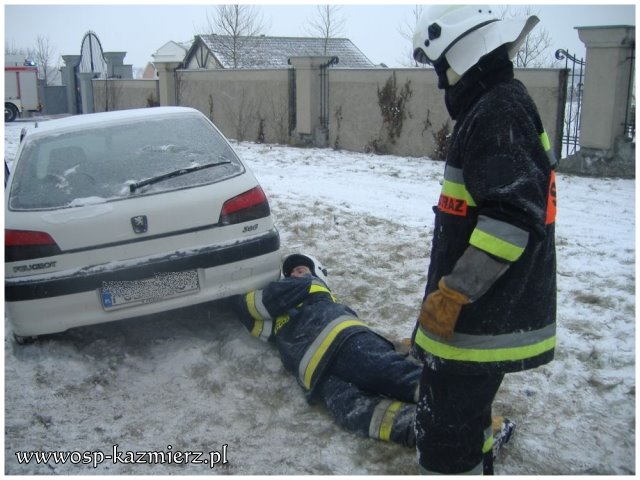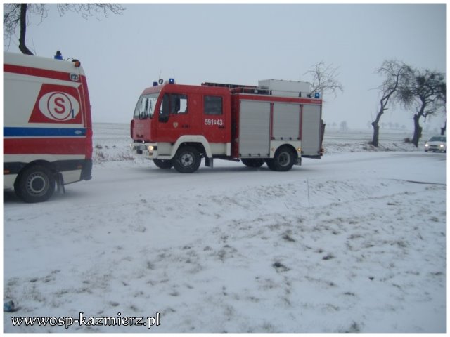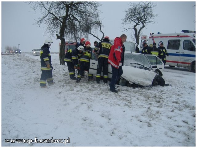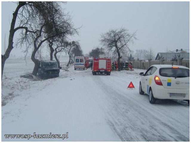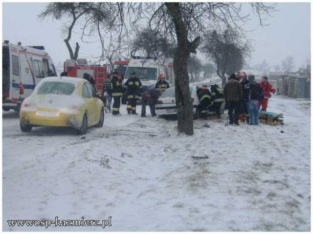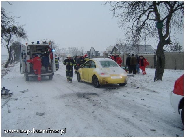 W dniu 17 lutego 2011 r. ochotników z Kaźmierza zadysponowano do zdarzenia, które miało miejsce na drodze łączącej miejscowości Piersko i Bytyń. W wyniku zderzenia dwóch aut ucierpiały trzy osoby, które zostały zabrane do szpitala. Na miejsce akcji dotarły jednostki straży z PSP Szamotuły, OSP Podrzewie i OSP Kaźmierz oraz Policja i Pogotowie Ratunkowe. Strażacy wraz z ratownikami z pogotowia udzielili pomocy poszkodowanym, zabezpieczyli miejsce zdarzenia, zakręcili instalację gazową, odłączyli akumulatory oraz posprzątali miejsce akcji. Niestety trudne warunki atmosferyczne utrudniają szybki dojazd strażaków do danego zdarzenia.