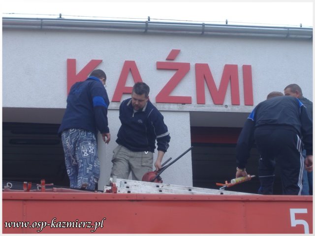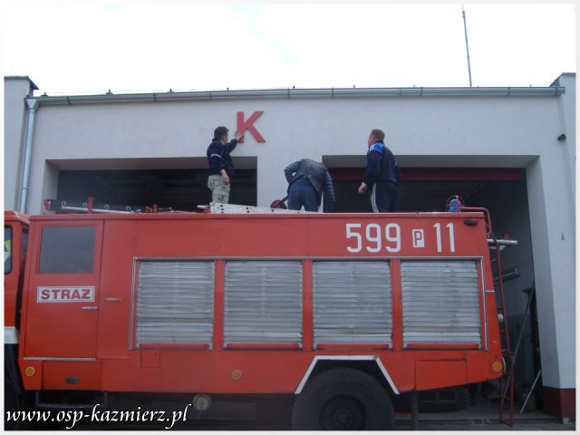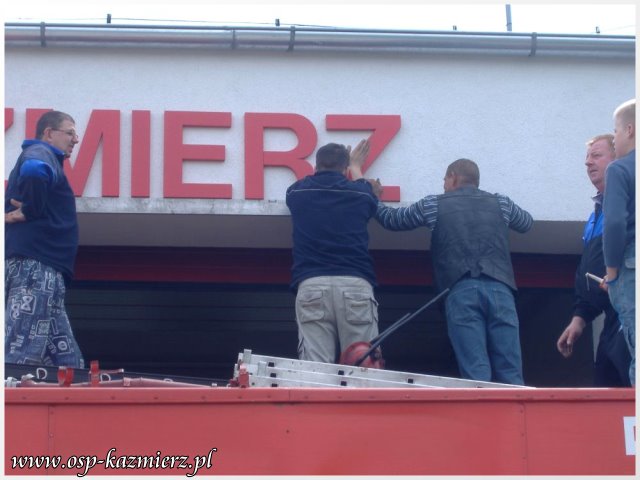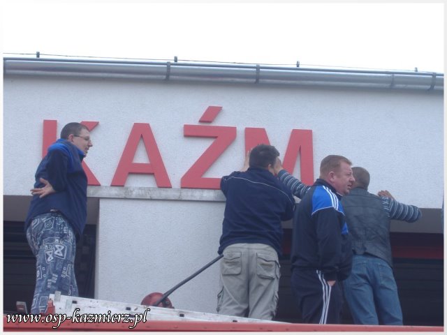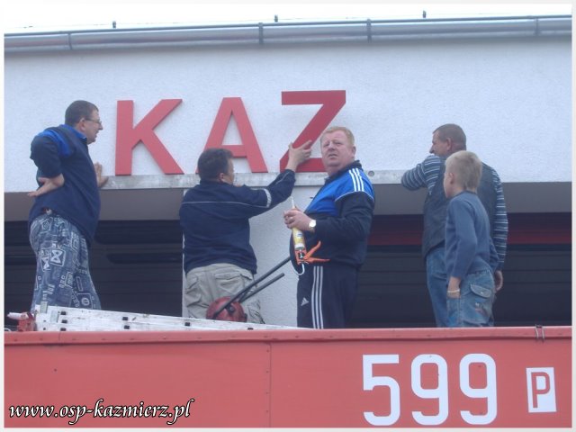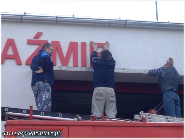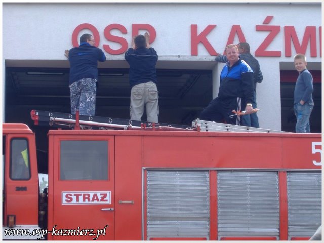 W dniu 2 maja 2011 r., druhowie OSP Kaźmierz pracowali nad poprawieniem estetyki swojej remizy. Widocznym elementem, który rzuca się w oczy, jest nowy szyld nad bramami. Wspomniane prace to pierwszy etap z zaplanowanych na ten rok przygotowań do przyszłorocznych uroczystości z okazji 100-lecia istnienia naszej jednostki.