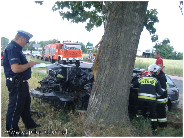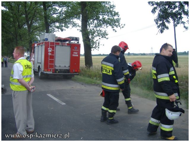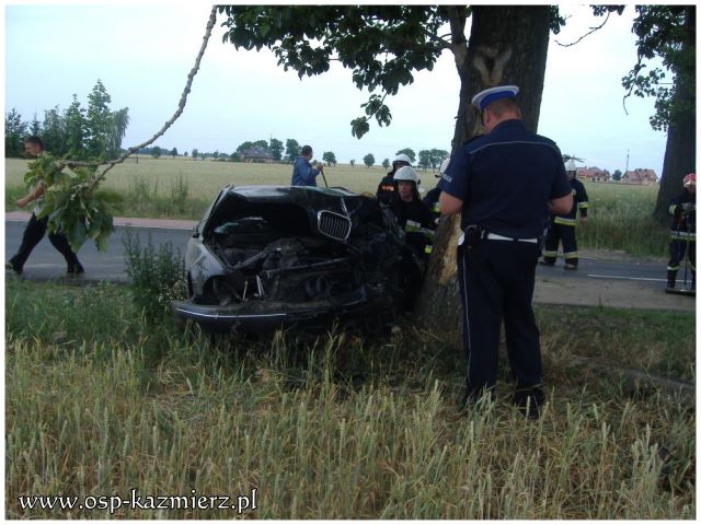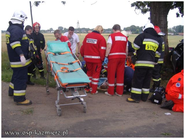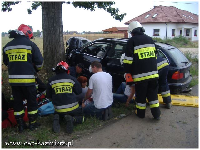 W dniu 26 czerwca 2011 r. strażacy zostali zadysponowani do wypadku w Kaźmierzu. Auto osobowe uderzyło w przydrożne drzewo. Poszkodowane zostały cztery osoby, w tym trójka dzieci. Udział w akcji ratowniczej brały dwa zastępy OSP Kaźmierz i PSP Szamotuły, oraz dwie karetki pogotowia, które zostały wsparte przez śmigłowiec LPR. Strażacy zabezpieczyli miejsce zdarzenia, udzielili pomocy przedmedycznej poszkodowanym, pomogli w transporcie poszkodowanego dziecka do helikoptera oraz posprzątali miejsce wypadku.