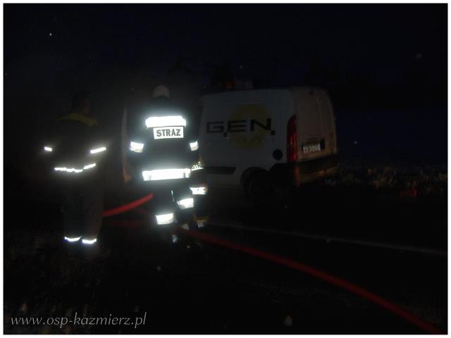 Dnia 16 lutego 2012 r. we wczesnych godzinach porannych, strażaków zadysponowano do pożaru auta, które zapaliło się w czasie jazdy. Do zdarzenia doszło w miejscowości Kaźmierz na ul. Poznańskiej. Udział w akcji gaszenia brał jeden zastęp PSP Szamotuły i dwa zastępy OSP Kaźmierz.