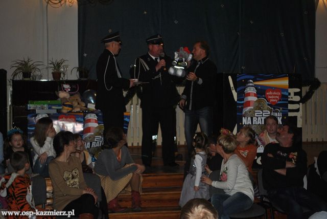 Dnia 12 stycznia 2014 r., również w Kaźmierzu grała Wielka Orkiestra Świątecznej Pomocy, na której nie zabrakło druhen i druhów z OSP Kaźmierz. Nasza jednostka przekazała na licytację maskotkę-słonia strażaka oraz czujkę dymu i kalendarz strażacki. Chętne dzieci mogły zobaczyć auto strażackie od wewnątrz. Strażacy przybliżyli także kilka cennych informacji na temat pierwszej pomocy i zabezpieczyli Światełko Do Nieba.
