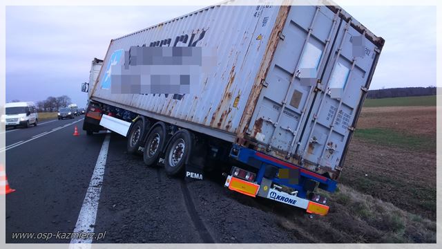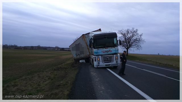 W dniu 16 marca 2017 r., kierowcy jadący drogą DK 92 (Poznań- Pniewy) mieli utrudniony przejazd, ponieważ doszło do przechylenia auta ciężarowego, które zajmowało pas ruchu. Na miejsce zadysponowano OSP Kaźmierz, OSP Podrzewie, Policję oraz Pomoc Drogową. Przy pomocy holowników udało się auto wyciągnąć i na szczęście nie doszło do jego przewrócenia.