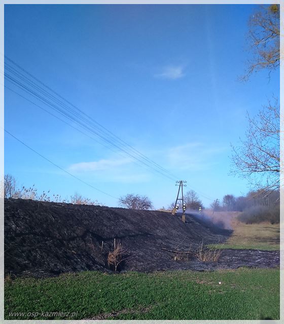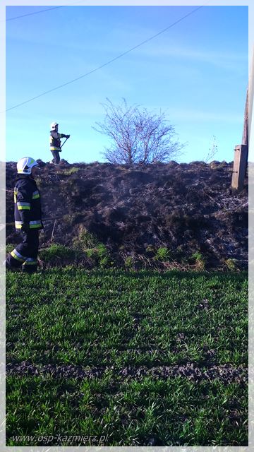 W niedzielę 26 marca 2017 r. dwa zastępy OSP Kaźmierz zostały zadysponowane do pożaru traw w miejscowości Komorowo. W okresie wiosennym strażacy otrzymują wiele zgłoszeń o pożarach traw i nieużytków rolnych. Trzeba pamiętać, że po zimie trawy są wysuszone i płoną szybko, co może spowodować większe zagrożenie. Wypalanie traw jest niedozwolone.