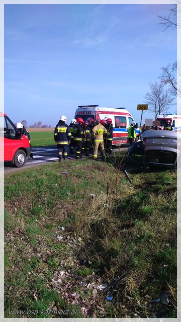 W sobotę 1 kwietnia 2017 r. po godz. 9 rano doszło do zderzenia dwóch aut osobowych w miejscowości Pólko (gm. Kaźmierz), w wyniku którego pięć osób trafiło do szpitala. Jedno z aut po zderzeniu przewróciło się i znajdowało się w pobliskim rowie. Osoby biorące udział w zdarzeniu opuściły pojazdy o własnych siłach. Na miejsce akcji zadysponowano: JRG Szamotuły, OSP Kaźmierz, OSP Otorowo, OSP Podrzewie, ZRM, Policję. Strażacy zabezpieczyli miejsce zdarzenia, udzielili pomocy poszkodowanym, odłączyli akumulatory w pojazdach, zneutralizowali płyny eksploatacyjne, kierowali ruchem ,posprzątali miejsce akcji.