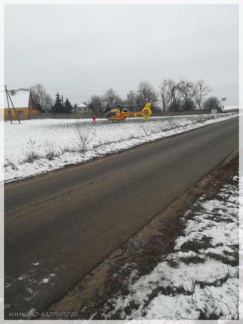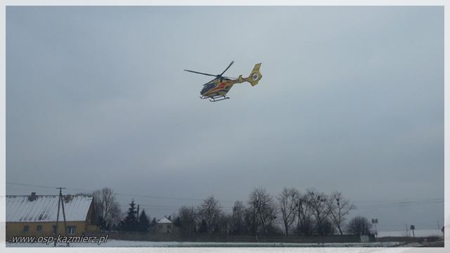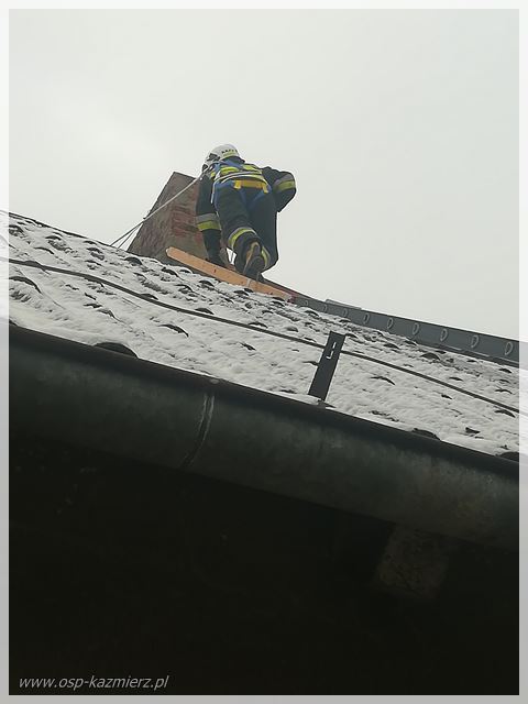 W środę 23 stycznia 2019 r. strażaków z Kaźmierza trzykrotnie dysponowano do zdarzeń. Pierwsze w godzinach porannych, to pożar gałęzi na polu w miejscowości Chlewiska, kolejne około godziny 13:16, to zabezpieczenia lądowania Lotniczego Pogotowia Ratunkowego w miejscowości Brzezno wraz ze strażakami z JRG Szamotuły. Następnie o godz. 14:35 strażacy udali się do miejscowości Młodasko, gdzie na kominie budynku mieszkalnego dość długo przesiadywał kot, który nie potrafił sam zejść.