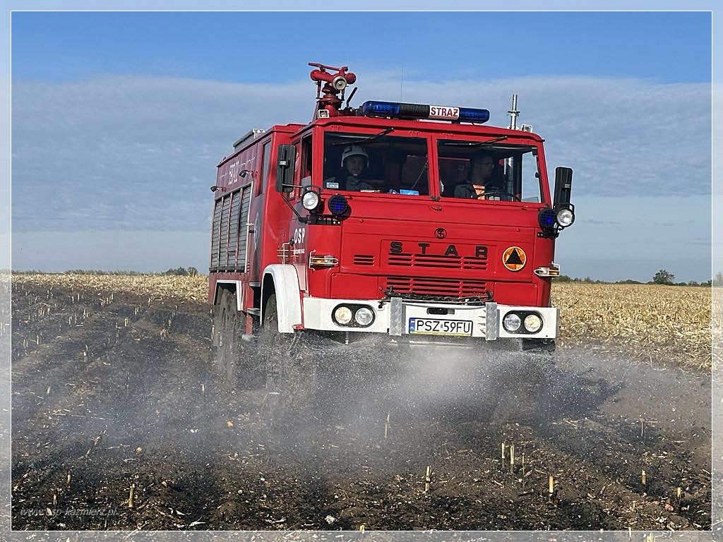 We wtorek 8 października 2024 r., po godzinie 14:00 strażacy z JRG Szamotuły, OSP Kaźmierz i OSP Sokolniki Małe udali się do miejscowości Komorowo, gdzie doszło do pożaru ścierniska po skoszonej kukurydzy.