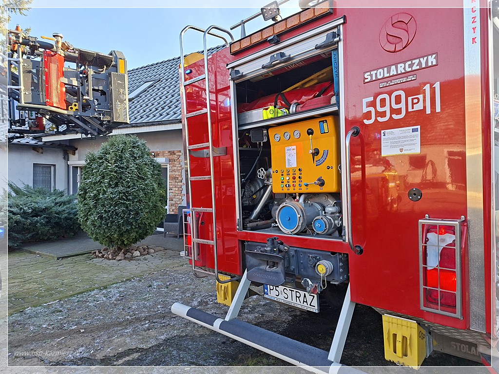 W sobotę 22 listopada 2025 r., około godziny 10:00 w miejscowości Kaźmierz, doszło do pożaru sadzy w przewodzie kominowym. Na miejsce zadysponowano JRG Szamotuły, OSP Chlewiska i OSP Kaźmierz. Po przybyciu na miejsce strażacy zabezpieczyli teren i przystąpili do działań. Przy użyciu odpowiednich środków gaśniczych proszkowych stłumili pożar, wyczyścili wyczystkę i sprzętem kominiarskim usunęli nadpaloną i zalegającą sadzę. Za pomocą kamer termowizyjnych dokładnie sprawdzono kondygnację budynku, aby wykluczyć zagrożenie przeniesienia się wysokiej temperatury na elementy drewniane stropu i dachu.
