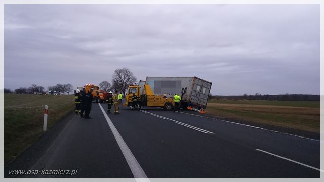 W dniu 16 marca 2017 r., kierowcy jadący drogą DK 92 (Poznań- Pniewy) mieli utrudniony przejazd, ponieważ doszło do przechylenia auta ciężarowego, które zajmowało pas ruchu. Na miejsce zadysponowano OSP Kaźmierz, OSP Podrzewie, Policję oraz Pomoc Drogową. Przy pomocy holowników udało się auto wyciągnąć i na szczęście nie doszło do jego przewrócenia.