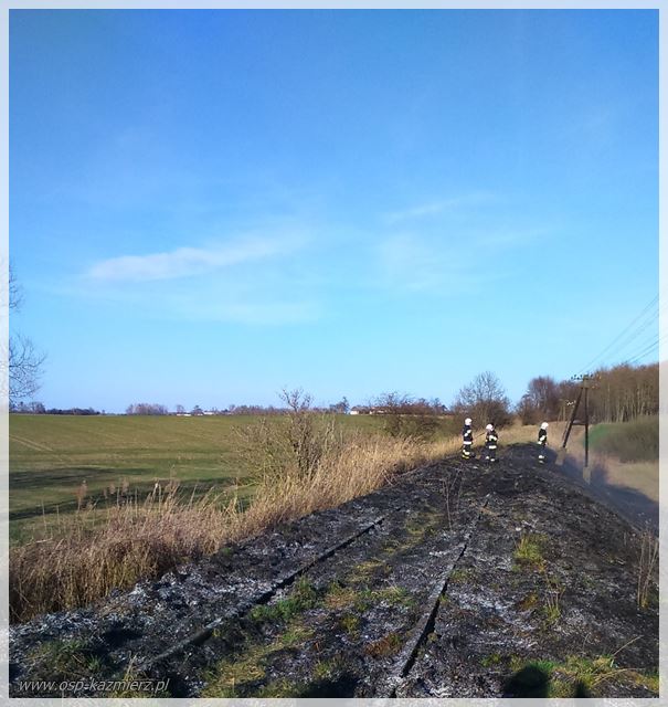 W niedzielę 26 marca 2017 r. dwa zastępy OSP Kaźmierz zostały zadysponowane do pożaru traw w miejscowości Komorowo. W okresie wiosennym strażacy otrzymują wiele zgłoszeń o pożarach traw i nieużytków rolnych. Trzeba pamiętać, że po zimie trawy są wysuszone i płoną szybko, co może spowodować większe zagrożenie. Wypalanie traw jest niedozwolone.
